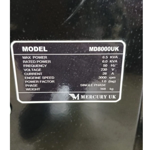 Full Description The Mercury UK 6.5kVA water-cooled diesel generator is the ultimate super-silent power solution for homes, offices, clinics, hotels, schools, churches and construction sites that demand quiet, reliable and fuel-efficient backup power.